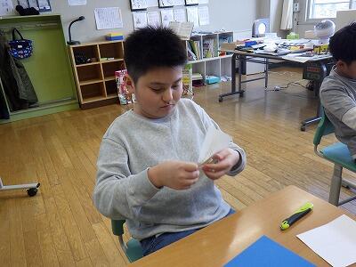 作業が完了しているため、折りの作業のみ。子ども達は完成形を頭に入れながら、慎重に