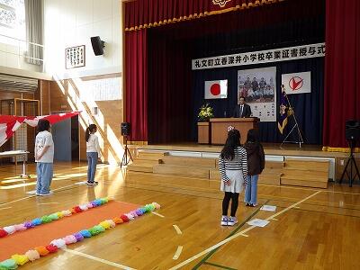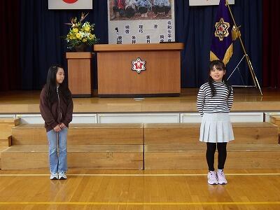 式では、在校生4名一人一人に終了証を手渡しました。式の中で、次年度の抱負の