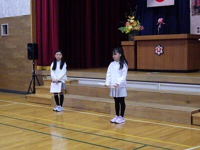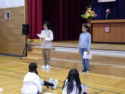 とおもいます。在校生も人数が少ない中ですが、一人一人が6年生に気持ちを伝えようと、コールに合唱に